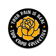 Brighten up any surface with our Gold Rose Sticker. With a traditional tattoo design and the bold statement "Your Pain is Real," this sticker is perfect for adding some edge to your laptop, water bottle, or anything else you can stick it on. Show off your unique style with this quirky sticker!